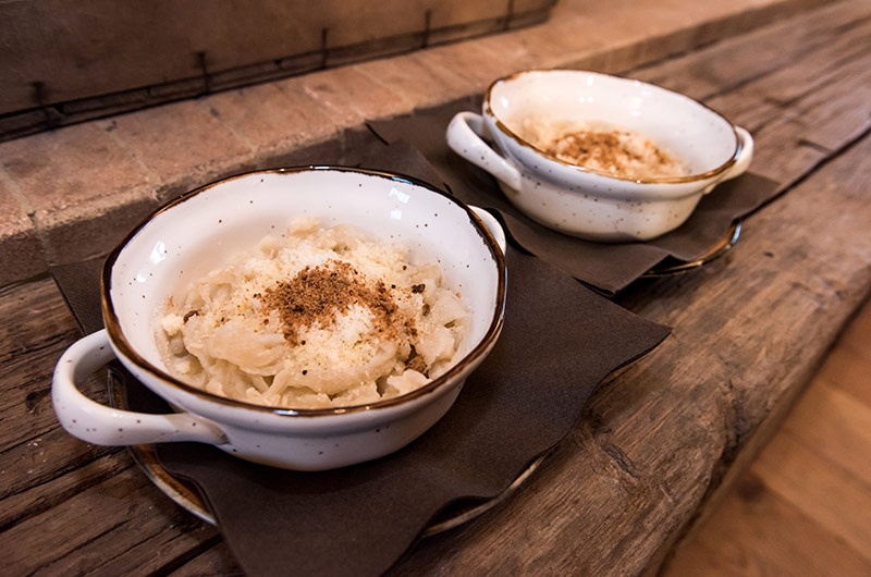 Il rifugio Malga Moscarda è aperto tutti i giorni d’estate a mezzogiorno e la sera su prenotazione, mentre nel periodo invernale l’apertura è solo nei fine settimana. Il menù rispetta la tradizione, con pochi piatti ma quelli che più caratterizzano il territorio, a partire dai famosi «gnochi sbatui con la fioreta» che Michele prepara e serve solo se ha fioreta fresca dalle malghe vicine, altrimenti rinuncia e propone delle alternative.