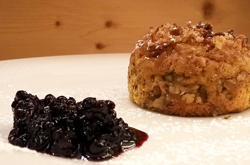 die das Gasthaus berühmt machte, ist die gegrillte Forelle auf Holzkohle, die wir einmal im Jahr in der alten Methode der Kimbern produzieren. Pasta, Kuchen, Konfitüren, Marmeladen, Äpfel - Senf sind alle hausgemacht.